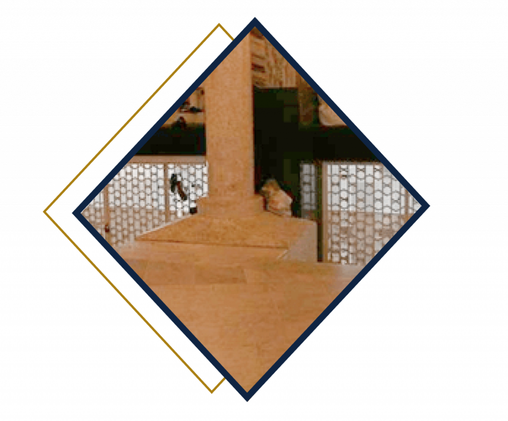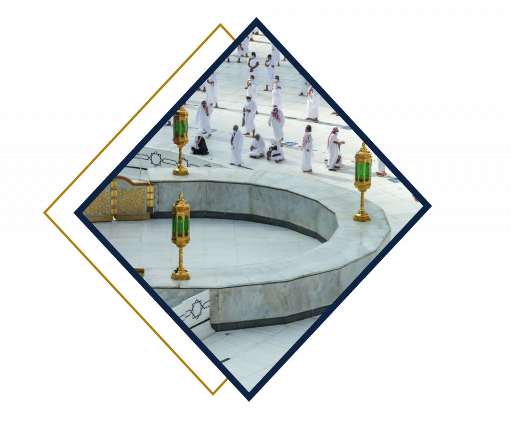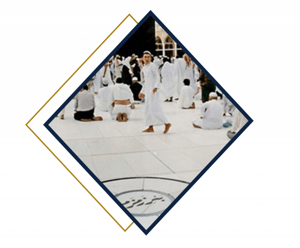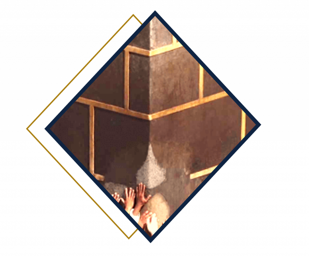 The Maqame Ebrahim refers to the stone on which Ebrahim (عليه السلام) stood on while he was building the Ka’bah. As Ismail (عليه السلام) passed stones to Ebrahim (عليه السلام), and as Ebrahim (عليه السلام) continued laying them in place the Maqame Ebrahim miraculously continued rising higher and higher as the walls rose. Allah (سبحانه وتعالى) caused the trace of his footprints to remain on the stone as a reminder to the believers among his descendants.