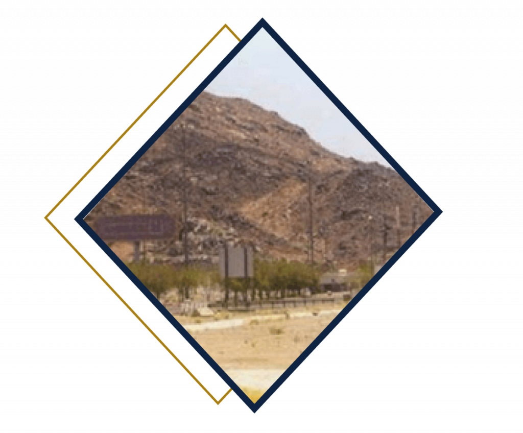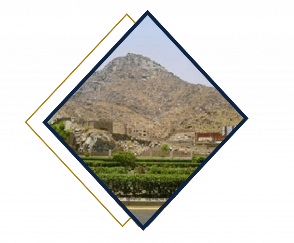 This is Mount Hira (Jabal Hira), which lies about two miles from the Ka’bah. Near the top is a small cave, a little less than 4 meters in length and a little more than one and a half meters in width. It was here that the Prophet Muhammad (صَلَّى اللّٰهُ عَلَيْهِ وَسَلَّم) received the first revelations of the Holy Quran during the month of Ramadhan in 610 CE. The mountain is also known as Jabal Noor (the Mountain of Light).